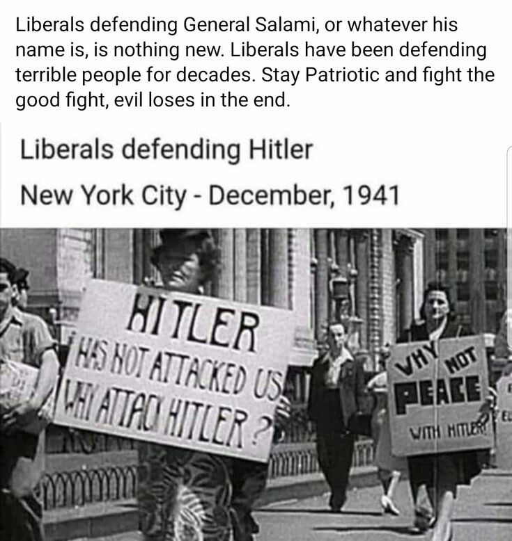 People didn't know about the camps until the end of the war. Hitler was just a leader of Germany. Until he lost, his crimes exposed, and a million Hollywood movies made that we've all seen from birth. Fuck Hitler though, really but also fuck getting involved in the Meddle East forever.